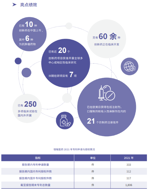报告指出,在科技创新战略引领下,AG视讯医药2021年累计研发投入62.03亿元,比上年增长24.34%,研发投入占销售收入比重达到23.95%,再创历史新高。以此为支撑,2021年公司有3款创新药获批上市,已上市创新药总量增至10款,其中6款为抗肿瘤药物。同时还有60余种创新药正在临床开发,250多项临床试验在国内外开展,其中近20个创新药项目获准开展全球多中心或地区性临床研究。在创新药研发上,AG视讯医药已基本形成了上市一批、临床一批、开发一批的良性循环。
