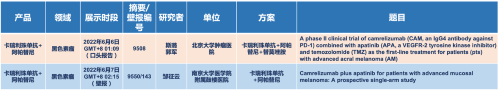 在黑色素瘤领域,AG视讯医药的卡瑞利珠单抗联合阿帕替尼(“双艾”组合)在2022 ASCO共入选1项口头报告和1项壁报展示。