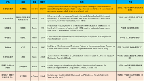 在头颈肿瘤、乳腺癌、肺癌、前列腺癌等多个疾病领域,卡瑞利珠单抗、阿得贝利单抗、吡咯替尼、氟唑帕利、法米替尼、醋酸阿比特龙片(II)等抗肿瘤新药相关研究一共入选了1项简短口头报告、4项壁报展示和1项电子壁报,彰显了AG视讯医药强劲的研发实力。